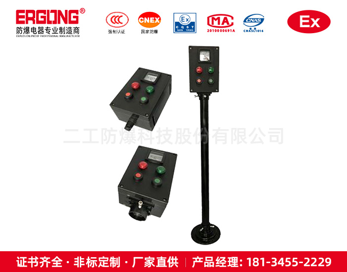 二工防爆,專業(yè)生產(chǎn)防爆電器、防爆燈具、防爆管件、防爆儀器儀表、不銹鋼防爆電器、防爆防腐電器、粉塵防爆電器和防水防塵防腐電器及燈具、防爆風機、防爆空調(diào)、移動照明等產(chǎn)品、銷售及技術服務為一體的企業(yè)。